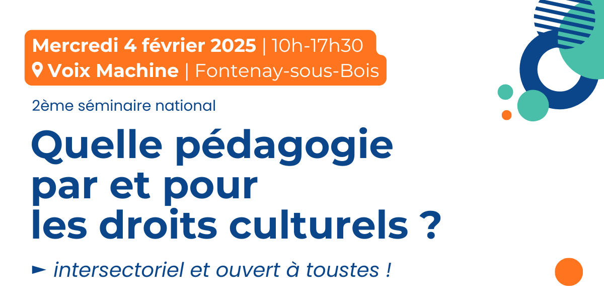 Un an après le premier séminaire "Quelle pédagogie par et pour les droits culturels ?", qui avait réuni près de 60 professionnel·les issu·es du secteur culturel, de l’éducation populaire, de l’accompagnement, et de la formation professionnelle, autour d'un travail collectif sur les fondements des droits culturels, les enjeux pédagogiques liés à leur appropriation et leur […]