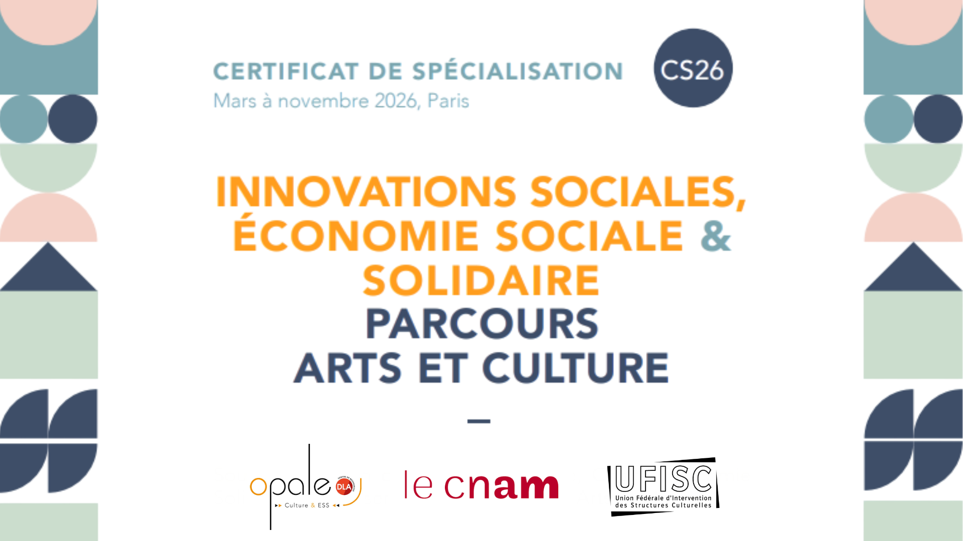 Ce certificat est issu des réflexions menées par le CNAM, Opale, l’UFISC et leurs partenaires sur l’identification des besoins en formation professionnelle sur la thématique culture et ESS, et sur les solutions, démarches et outils à développer pour « une autre économie de l’art et de la culture ».