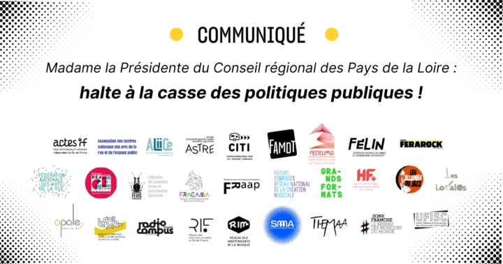 Temps de lecture : 3 minutes.Christelle Morançais, Présidente de la région des Pays de la Loire, a annoncé coupes drastiques dans les budgets alloués à la culture, au sport, à la vie associative et aux engagements citoyens (l’éducation populaire), appelant le secteur culturel « dépendant de l’argent public » à « se réinventer » . La baisse évoquée de 73% dans le budget de la culture pour 2025 constitue une menace mortelle pour l’écosystème culturel et artistique du territoire.